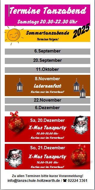 Hier finden Sie alle Informationen und Termine rund um unsere Tanzschule.